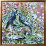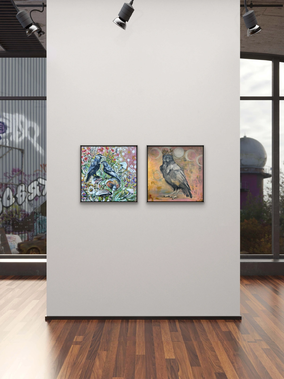 At the heart of this wild garden are the two Crows. Crows and Ravens are figures of immense intelligence in every culture, including the shamanic traditions of my Finnish heritage. They are not just birds; they are The Council, the quiet observers who hold the secrets of the woods.