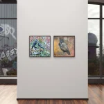 They perch together, sharing a silent council on the cap of an enormous mushroom—a nod to the unseen, interconnected network of nature. They survey the bounty of the bloom and the mysterious fungal life, reminding us that wisdom is found not in the loud, open world, but in the dense, silent knowledge of the earth.