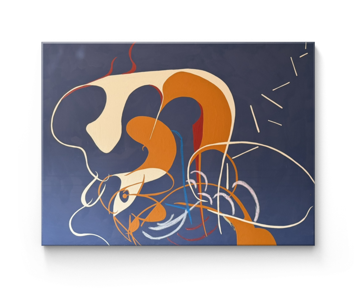 The energetic white, orange, and gold forms are the spirit of the flock in full flight. They represent the accumulated energy, rendered as Lived Lines and abstract planes that chart the Choreography of Joy—the complex, beautiful movements and disruptions they brought to our home. By using radical abstraction and this highly deliberate mix of color, I elevate their physical reality into an unbound and dynamic force—a continuing source of essential, shared joy.