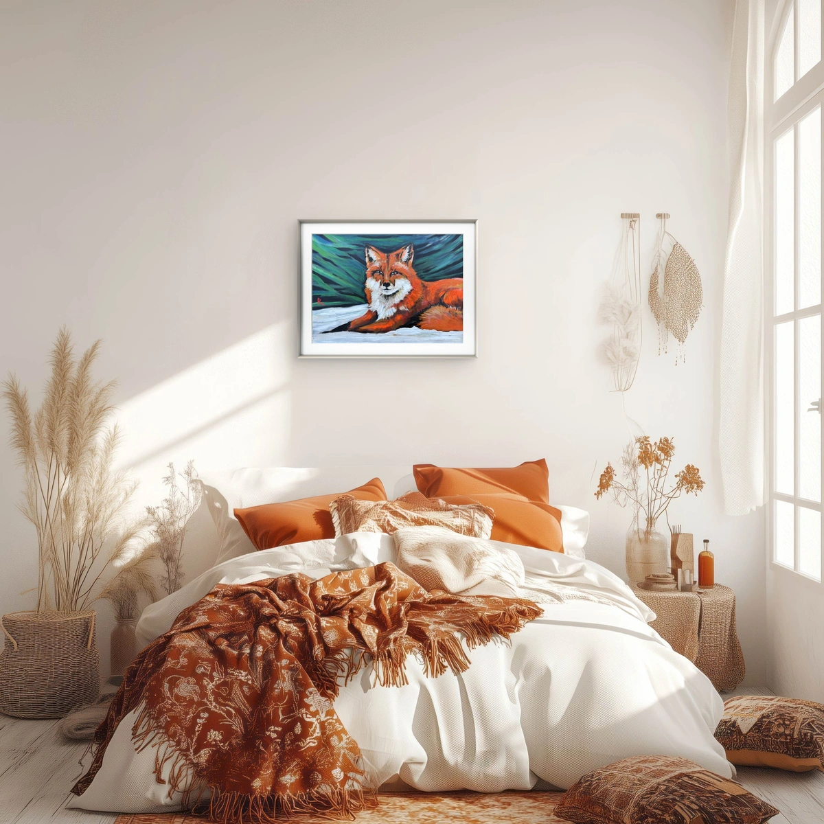 This piece captures that very moment: the fox, grounded in the quiet snow, yet the celestial energy of the Aurora is already swirling around him, a direct result of his silent, mystical work. It’s a reminder that even the most fleeting creatures hold the power to create the greatest wonders of the world.