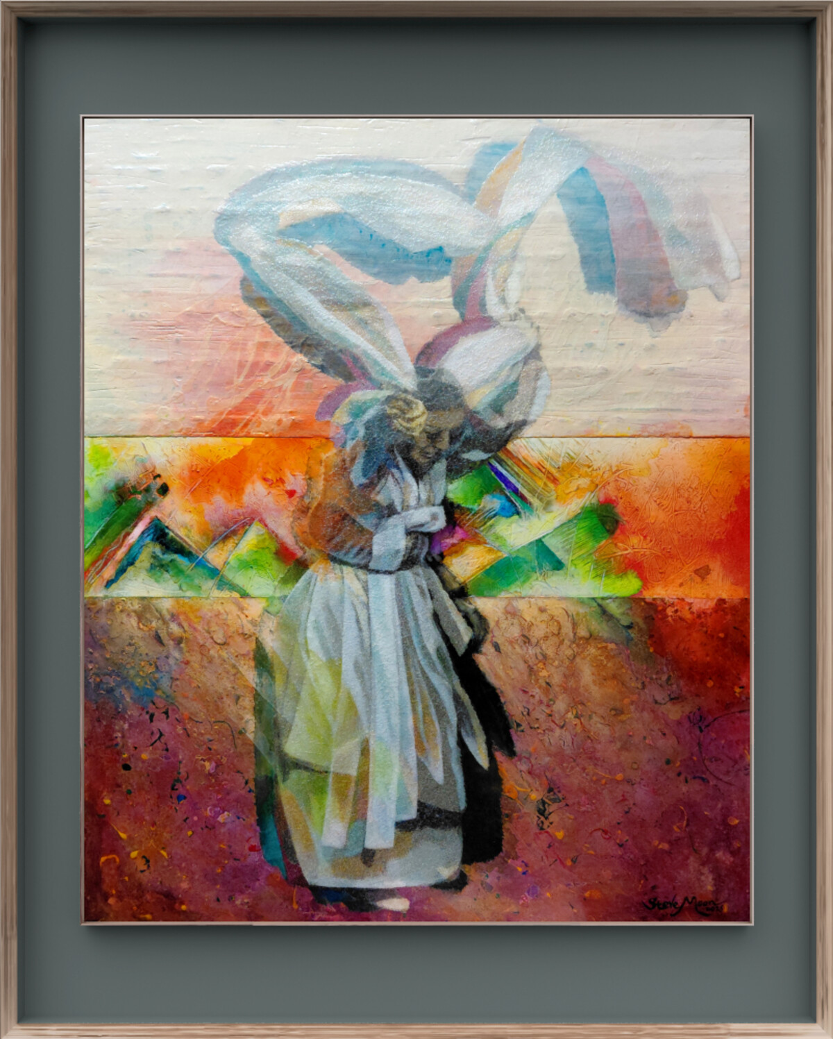 Description: This painting honors the spirit of Dosalpuri, a Korean traditional dance, as performed by Yang Gil-sun, holder of Korea’s National Intangible Cultural Heritage No. 97.Through the flowing lines and gentle curves of the brush, I sought to express the breathlike motion of her long white scarf — a sacred thread uniting heaven and earth.Rooted in Korean shamanic ritual, Dosalpuri is an improvised dance performed to dispel misfortune (sal) and restore peace, embodying the ancient Korean belief that harmony renews life. This artwork captures that spiritual rhythm, where every gesture, like her dance, becomes both healing and prayer.
