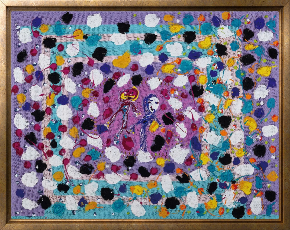 | Material | Mixed Media (Fiber/Knitting, Canvas, and Acrylic) |