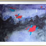 The dominant color palette—Red, White, and Blue—is intentionally used to honor France as the nation that produced both of the primary inspirations for this work: the author Saint-Exupéry and the artist Matisse. Furthermore, the chicken’s comb is replaced by a red crown, a visual metaphor that signifies the animal’s sense of triumph and success in achieving its own magnificent flight.