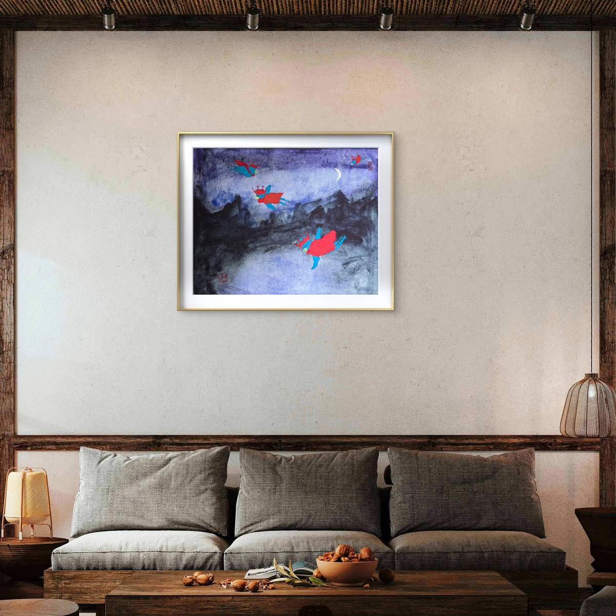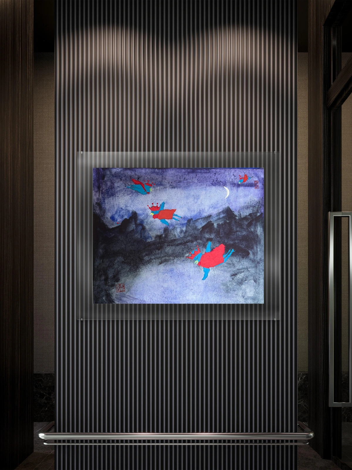 The piece is born from the imaginative concept of a domesticated chicken that, despite having its ability to fly diminished through breeding, still harbors a deep instinct for flight. The image captures the chicken’s secret act of rebellion: under the cover of darkness, it puts on a superhero-like, safe red cape and soars freely until dawn. This midnight excursion symbolizes the courageous release of suppressed natural desires and the pursuit of a magnificent personal dream.