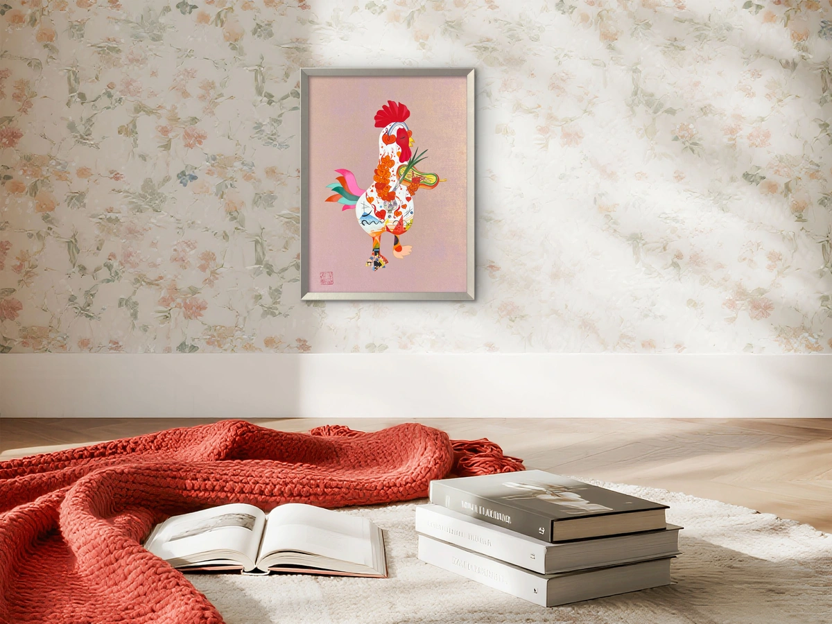 In my work, color is not merely a visual component; it is a language used to articulate emotion, energy, and atmosphere. I am particularly drawn to the theories of Wassily Kandinsky, who suggested that orange evokes a sense of health and self-assured power. To allow this vibrant energy to resonate with confidence, I chose a white chicken as my primary canvas, providing a clean foundation for the color to truly “speak.”