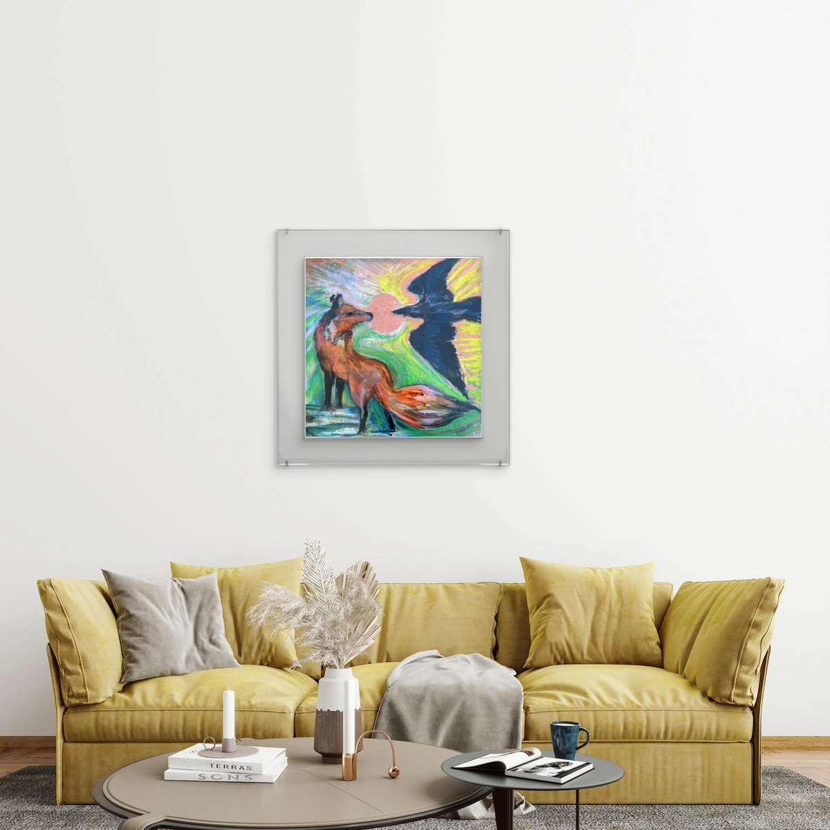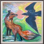 This is not a painting about being tricked; it is a moment where two highly intelligent, self-possessed spirits meet in the forest and realize they speak the same language. They are friends in cunning, allies in wisdom, and rulers of the shadows.