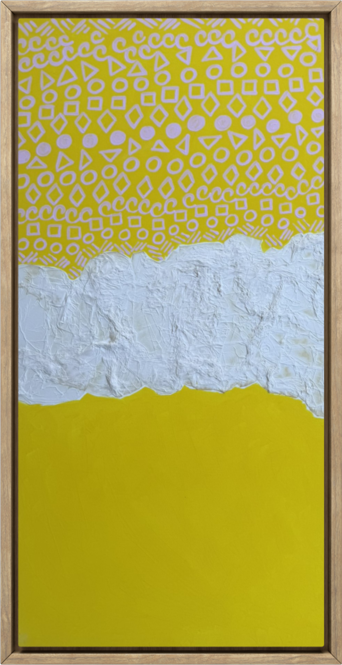 구성은 곡선, 원, 사각형, 삼각형 등 고요한 기하학에 의해 지탱됩니다. 복잡한 세상의 거친 모서리와 달리, 이 기본 형태들은 본질적인 그릇 역할을 하며—살아온 삶의 깊은 이야기들을 감싸 안습니다. 그들의 단순하고 단색의 색상은 우리가 모두 태어난 가장 근본적인 생명의 형태, 즉 우리의 궁극적인 고향으로의 시각적 회귀를 말해줍니다.