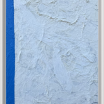 이러한 취약성을 둘러싸고 담고 있는 것은 단 하나의, 절대적인 짙은 푸른색 띠입니다. 이는 피할 수 없는 외부 세계의 경계, 즉 우리의 존재를 규정하는 혼돈, 고난, 또는 맥락의 끊임없고 흔들림 없는 압력입니다. 강렬한 색상과 취약하고 표현적인 질감 사이의 긴장은 강력한 시각적 역설을 만들어냅니다. 즉, 자아는 그 가장자리를 지키는 어둠에 맞서 끊임없이 제자리를 지키는 광활하고 빛나는 힘이라는 것입니다. 이 작품은 내면의 빛을 살려두기 위해 필요한 본질적인 에너지에 대한 증거입니다.