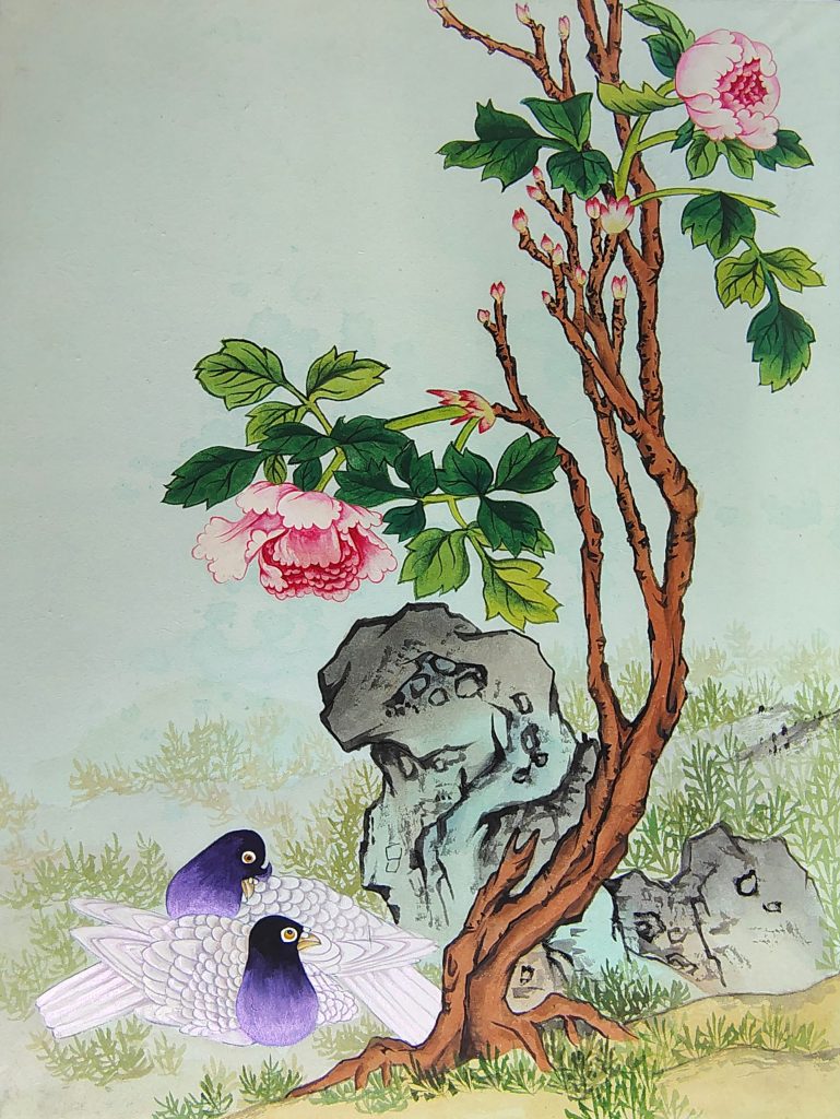 Flower and Bird Painting (화조화) is a lyrical expression of life’s harmony, where nature becomes metaphor. Traditionally, the bird represents the masculine and the flower the feminine—together symbolizing love, marriage, and the interconnectedness of opposites. But beyond romantic symbolism, 화조화 carries layers of poetic meaning and subtle humor rooted in Korean aesthetics.