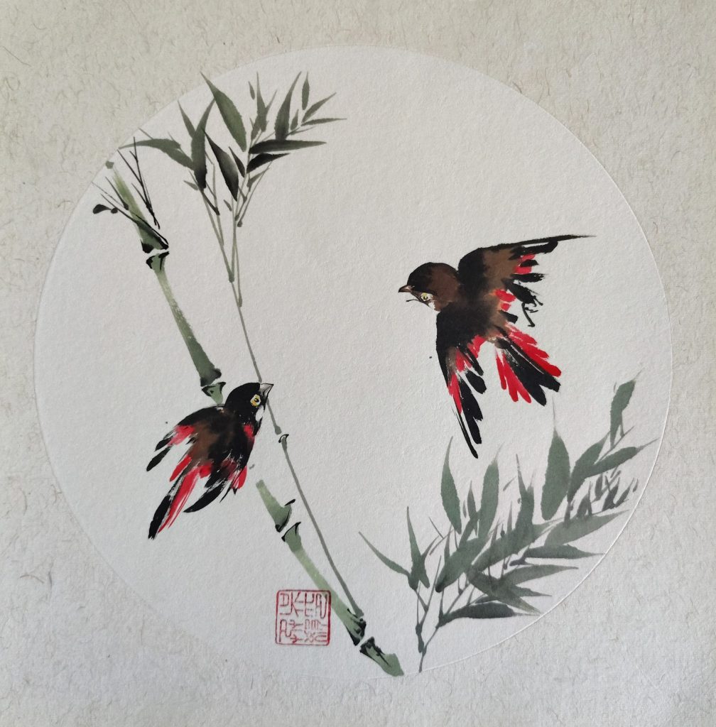 I create Asian brush paintings on bookmarks—small, intimate pieces of art made between moments of larger work. Each one is a quiet expression of my passion, a way to share beauty and meaning through simple strokes.