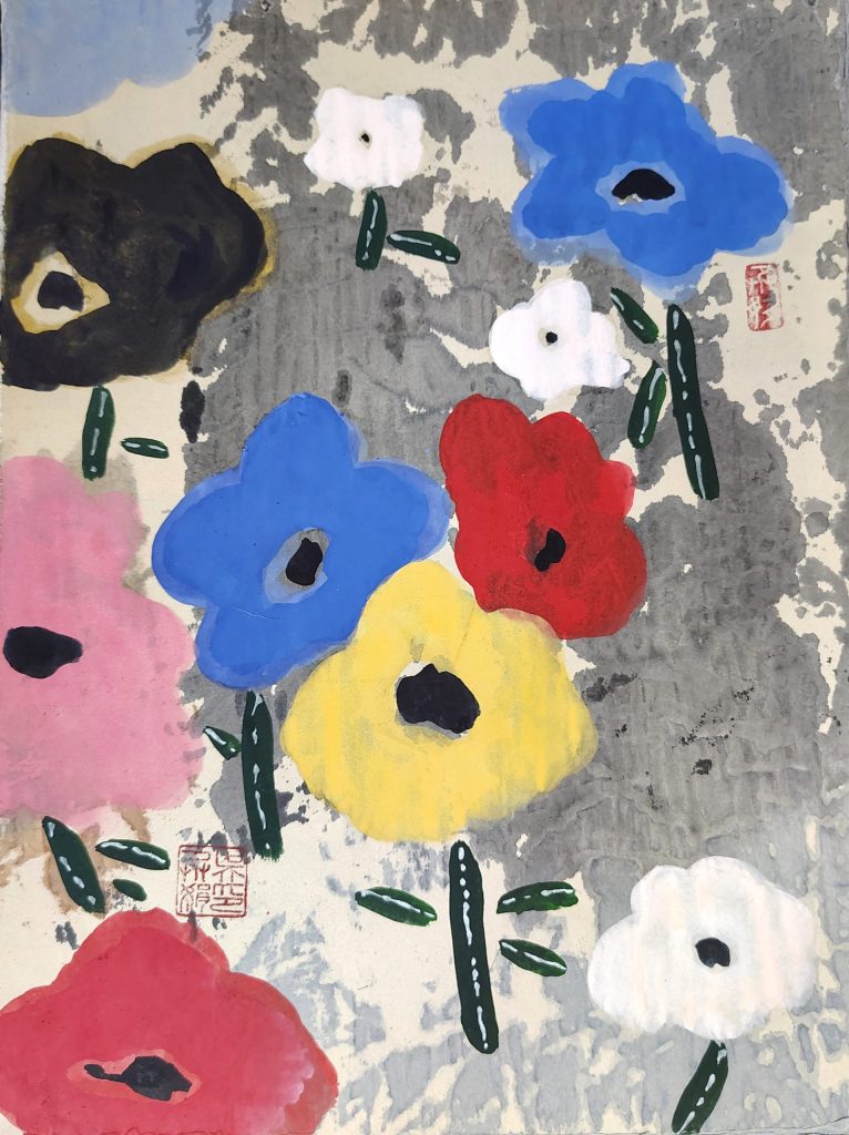 Material Korean mulberry paper,ink, Korean watercolor, animal glue,acrylic paint