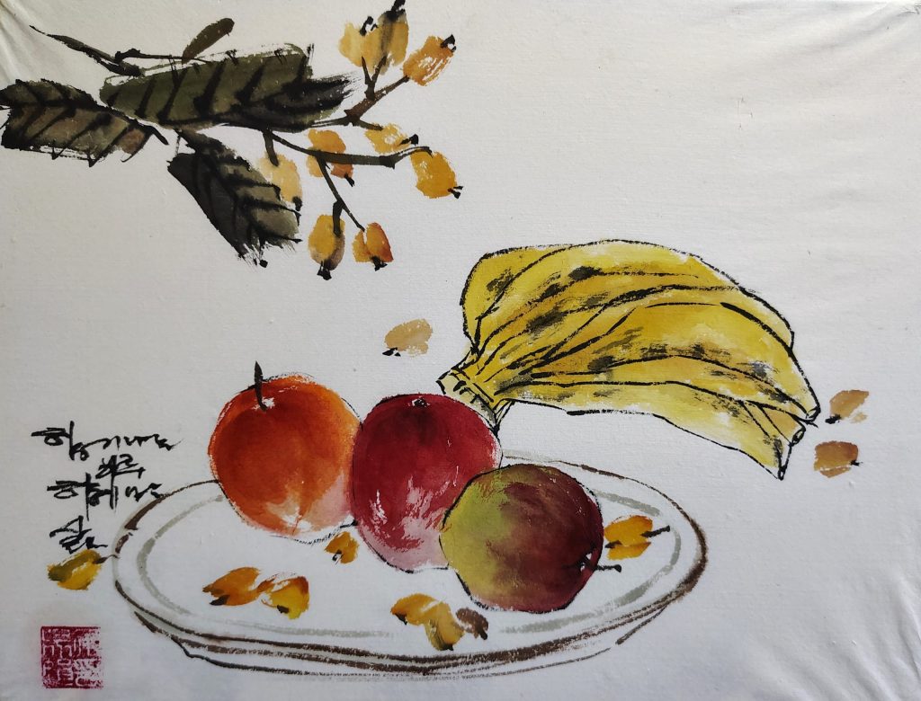 Asian Brush Painting is rich in tradition and expressive in depth. It encompasses diverse styles such as Landscape Painting (산수화), Flower and Bird Painting (화조화),  Fruit and Vegetable (소과도), The Four Gentlemen (사군자), Abstract (추상화) each offering a distinct perspective on nature and emotion.