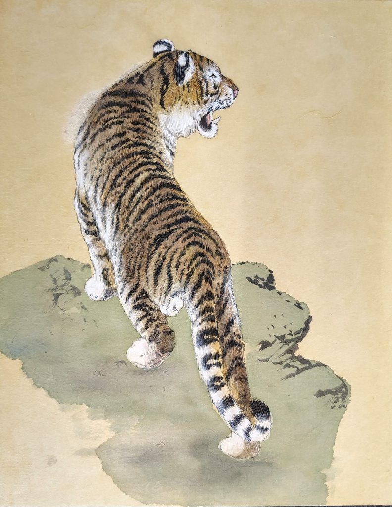 Tiger Painting (호도) is a well-known theme in Korean Folk Painting (민화), often depicting a fierce-looking tiger.. The tiger symbolizes power and protection. Together, they reflect satire, social commentary, and wishes for good fortune and harmony.