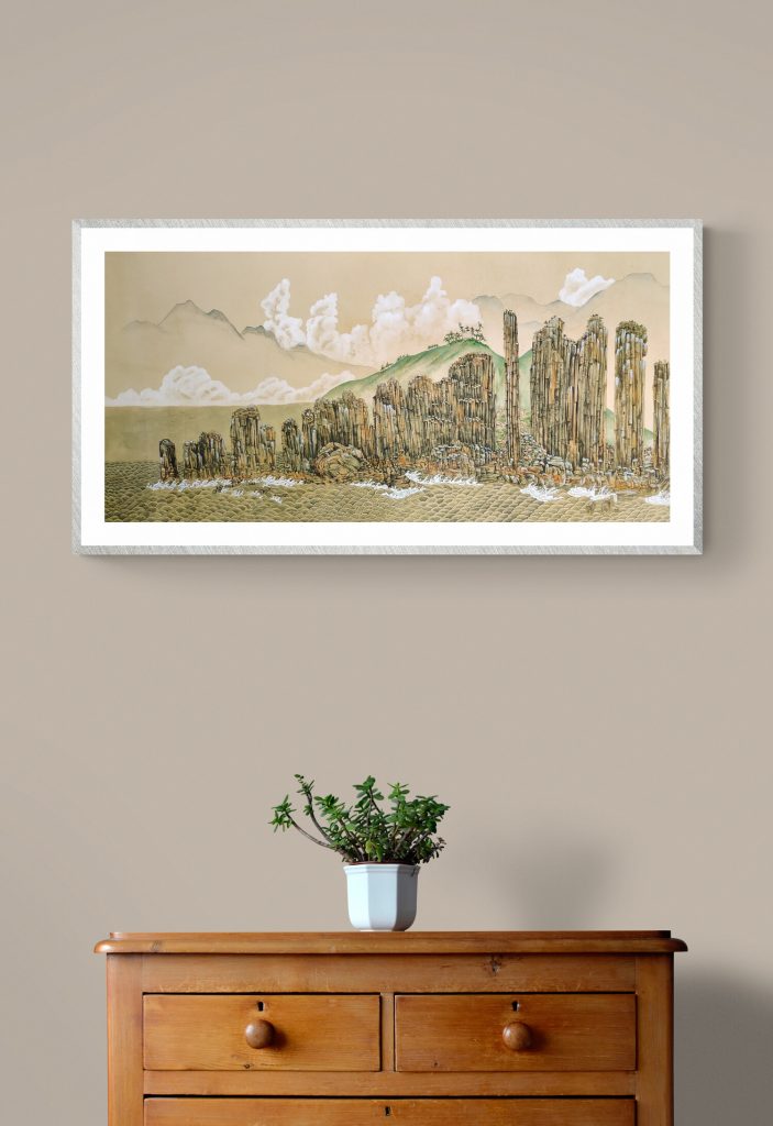 Landscape Painting (산수화) is not merely a representation of nature, but a spiritual journey. Rooted in Eastern philosophy, it unfolds like a silent poem—layer by layer—inviting the viewer to walk through mist-covered mountains, follow winding rivers, rest beneath ancient pines, or witness the glow of a distant hearth.
